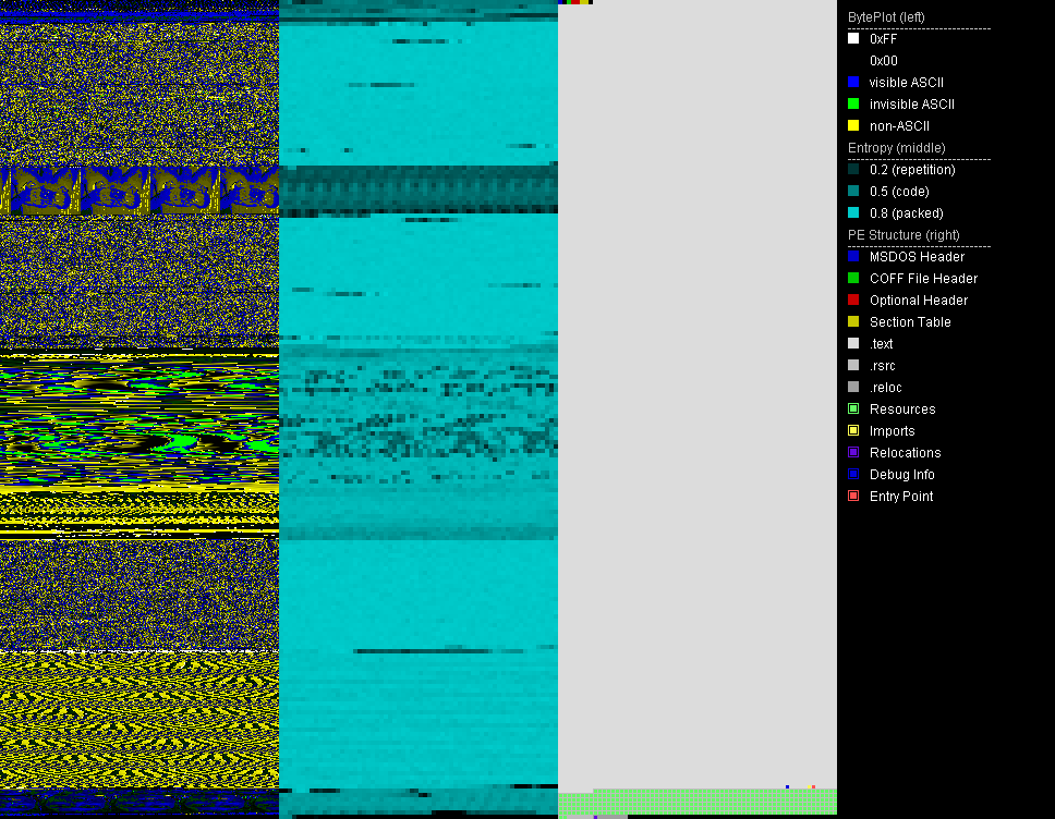 - Visualize PE file structure, local entropies and byteplot of the file with variable colors and sizes
